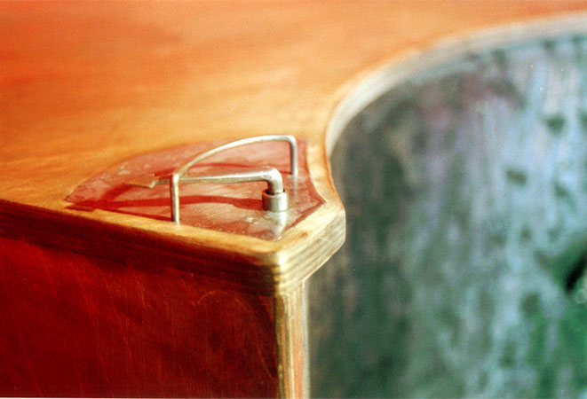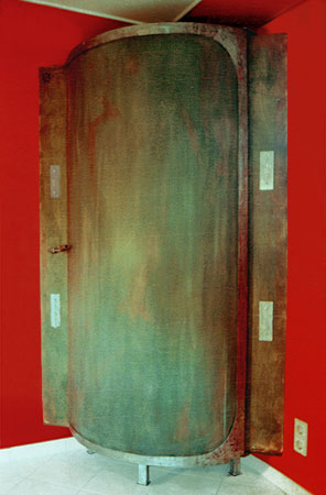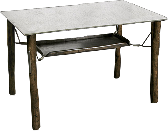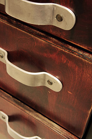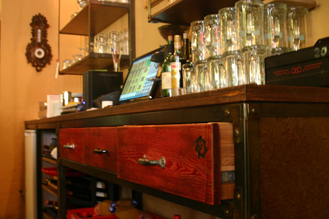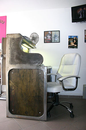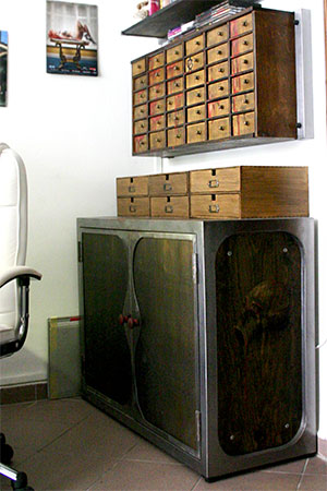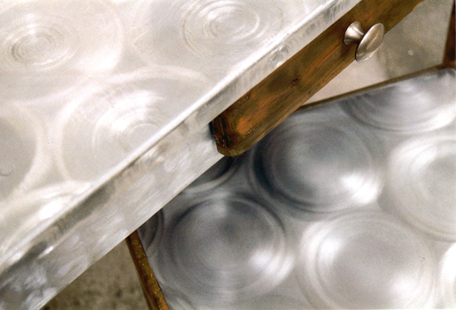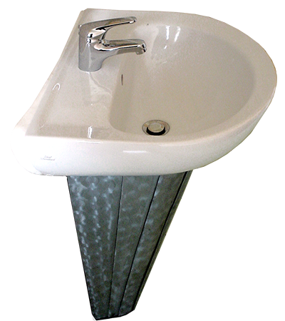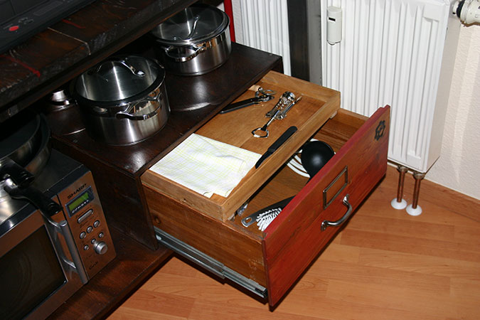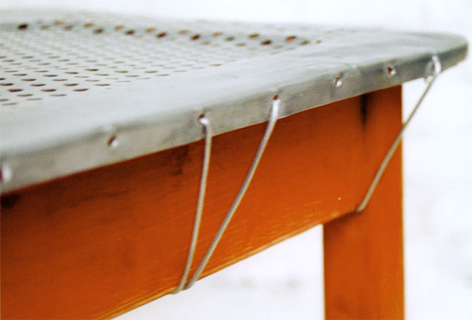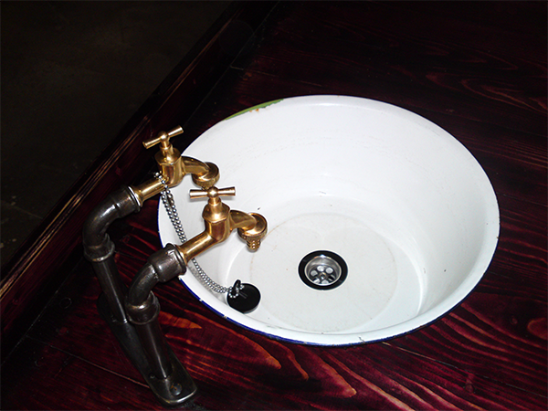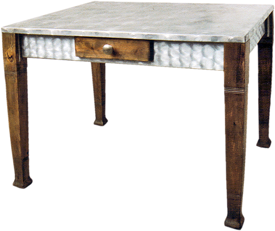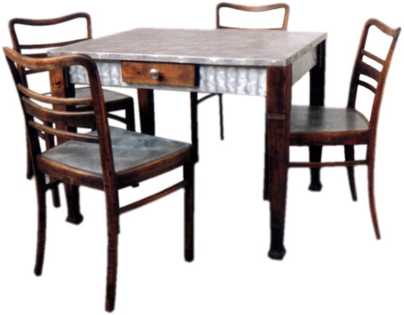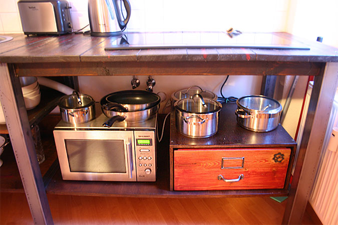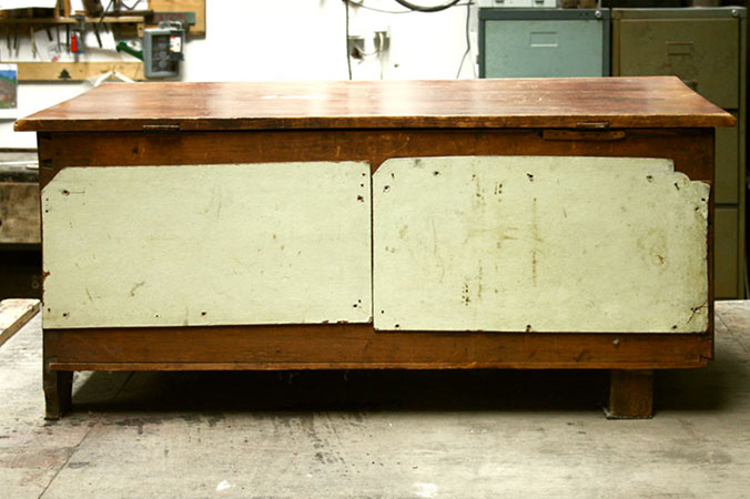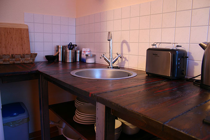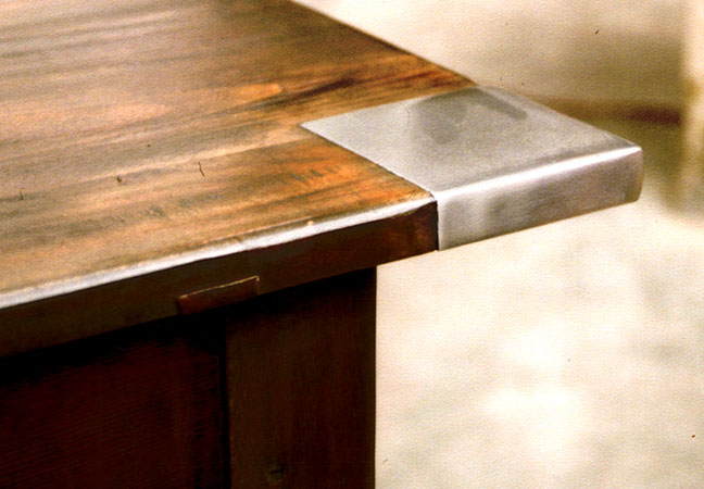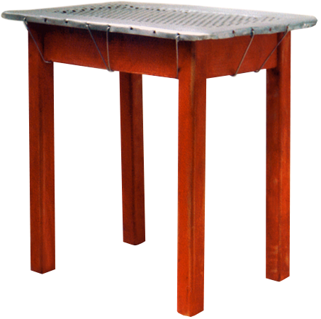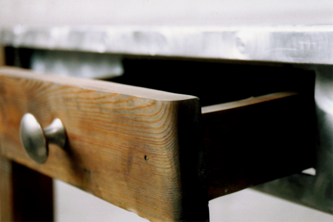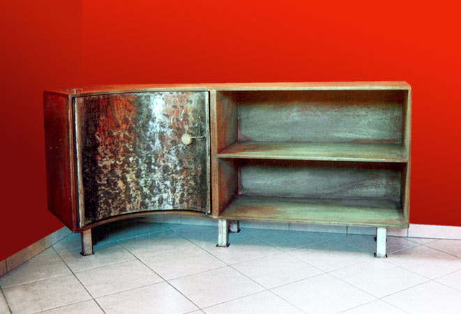 Anrichte: Kiefer, Chromblech, Waschbecken (emailliert)