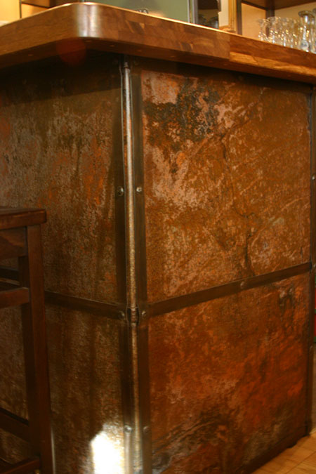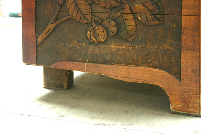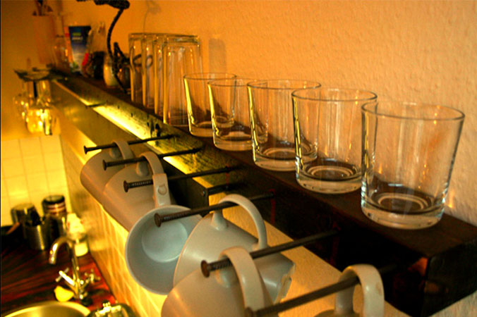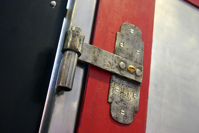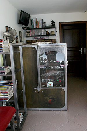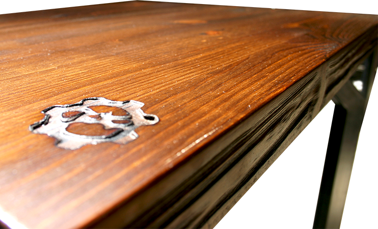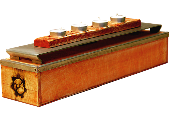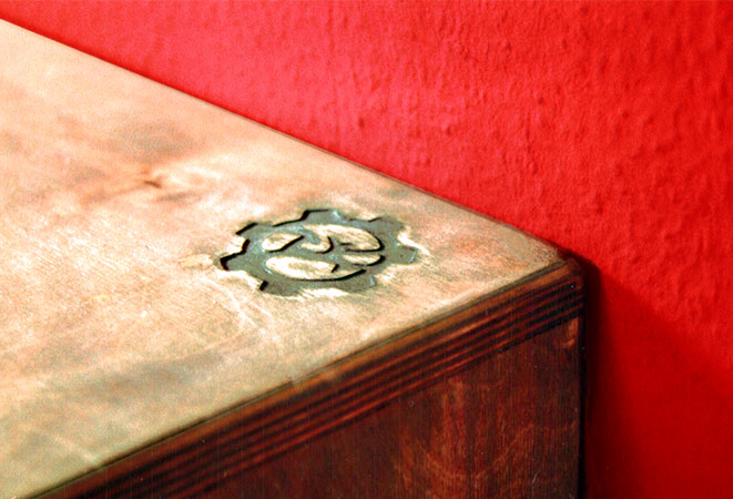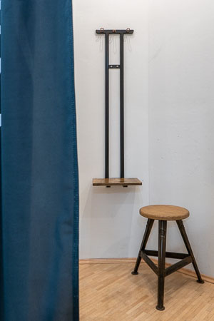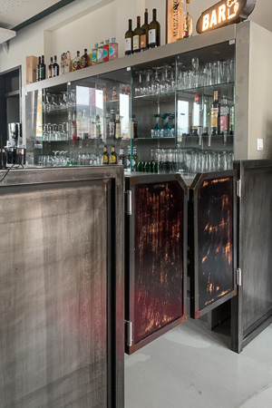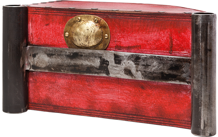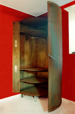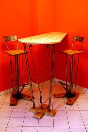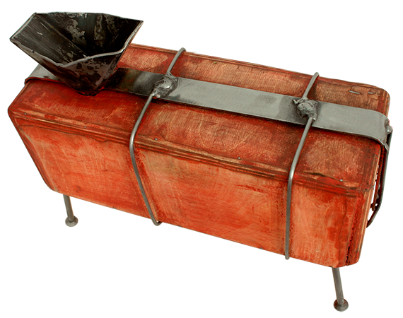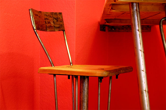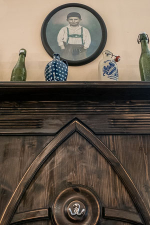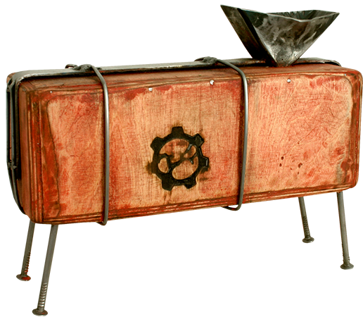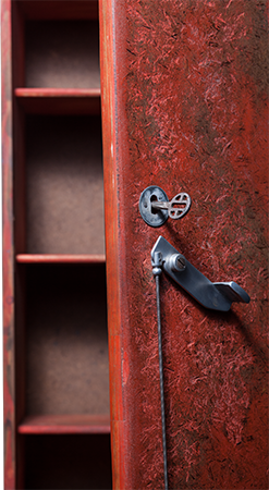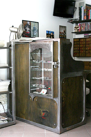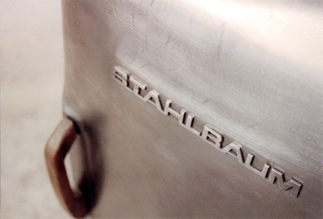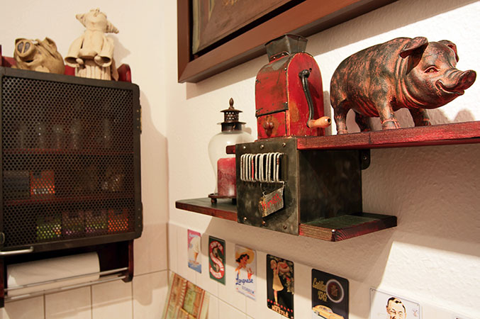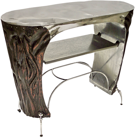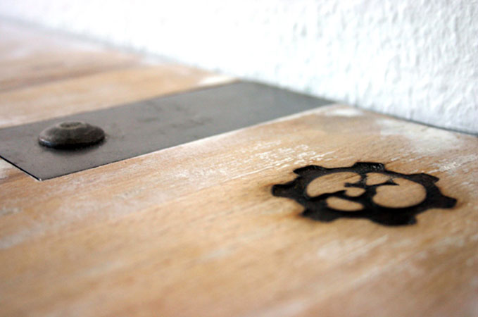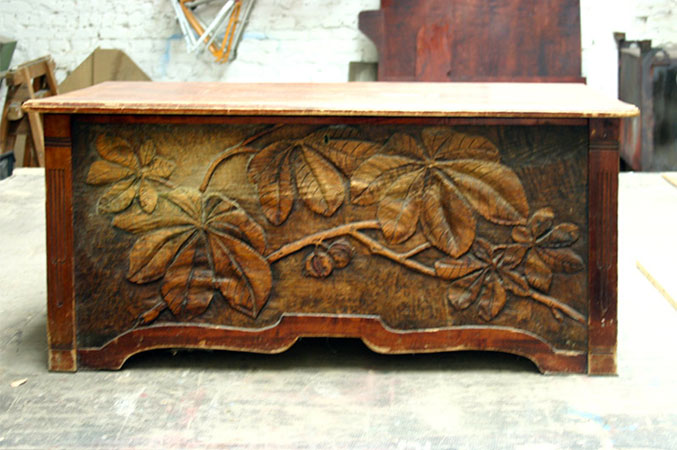Anrichte: Kiefer, Chromblech, Waschbecken (emailliert)