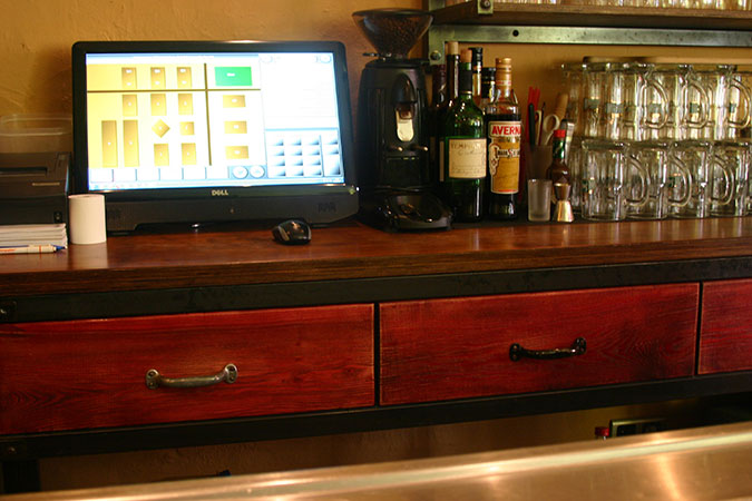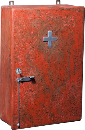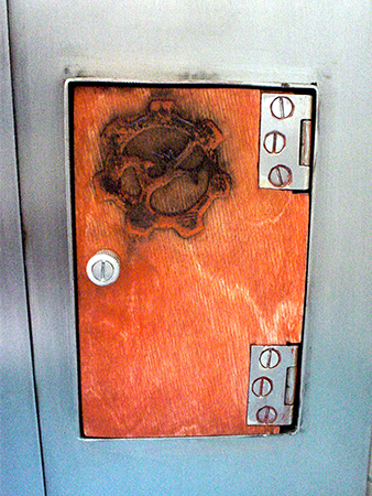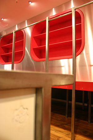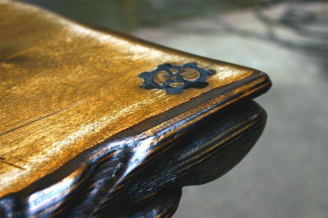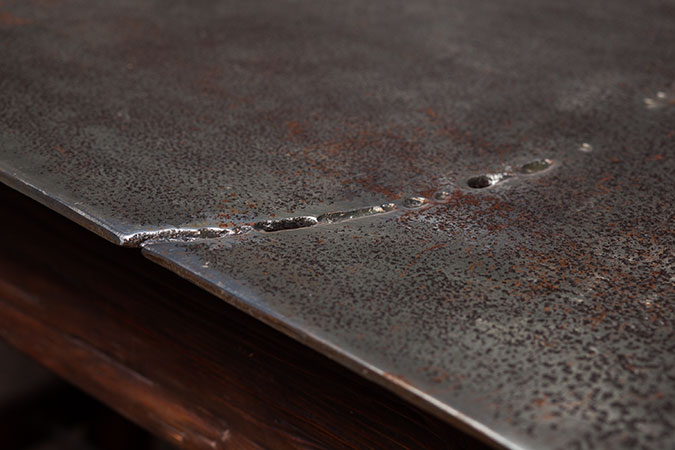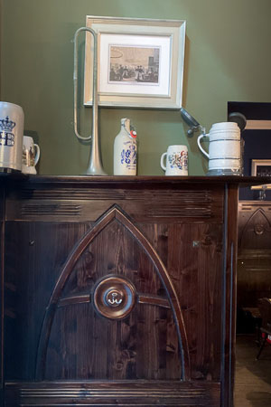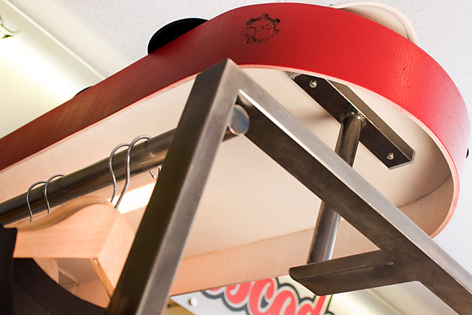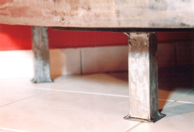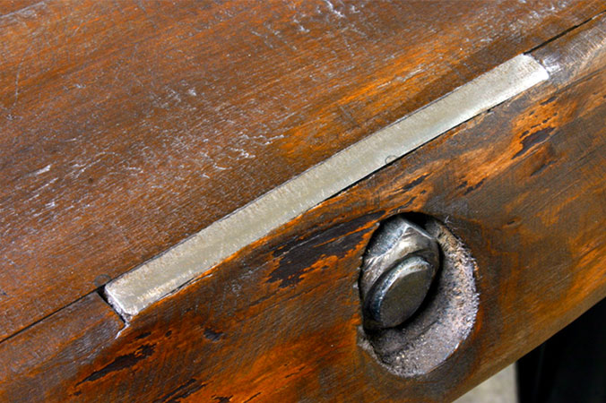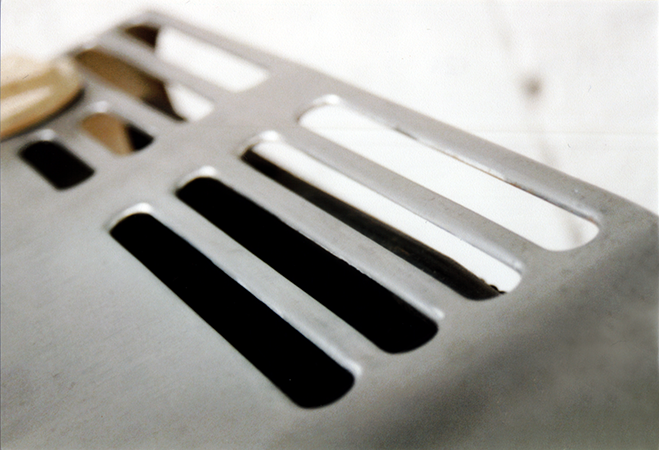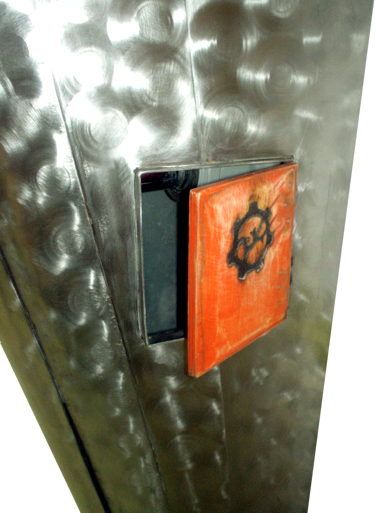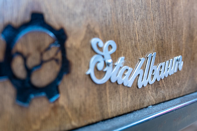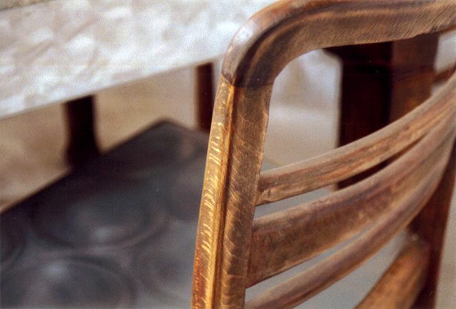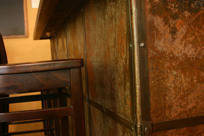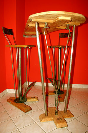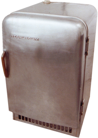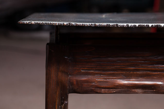 Anrichte: Kiefer, Chromblech, Waschbecken (emailliert)