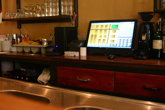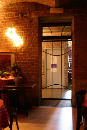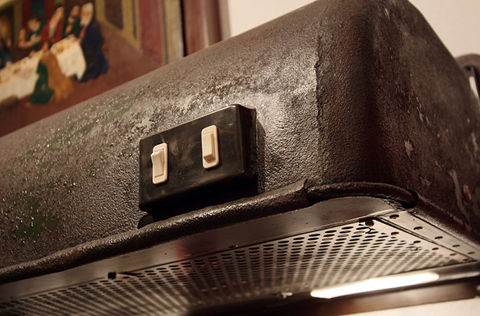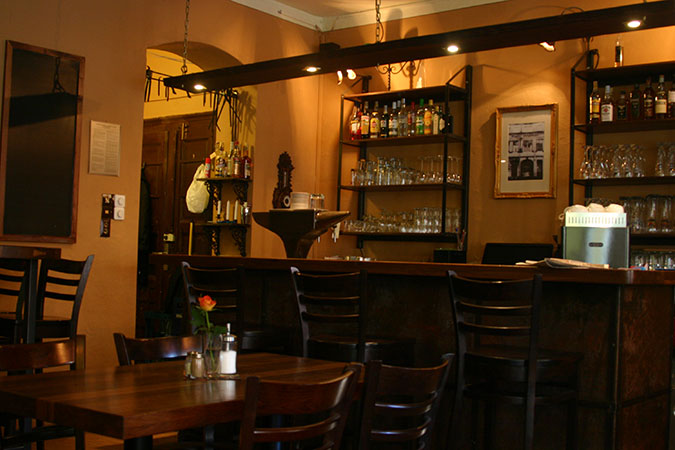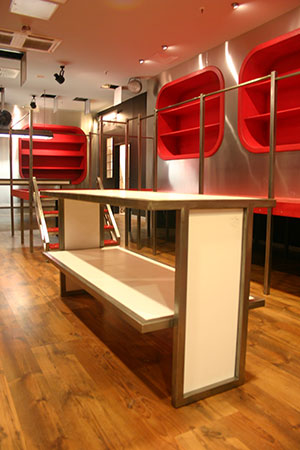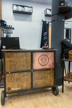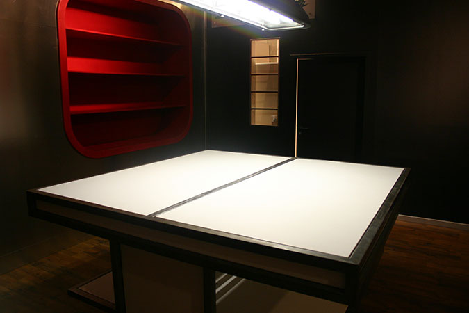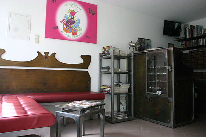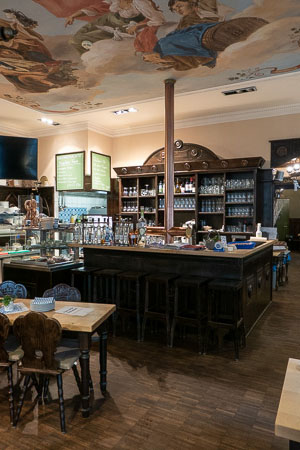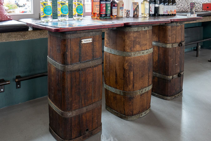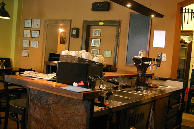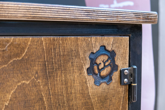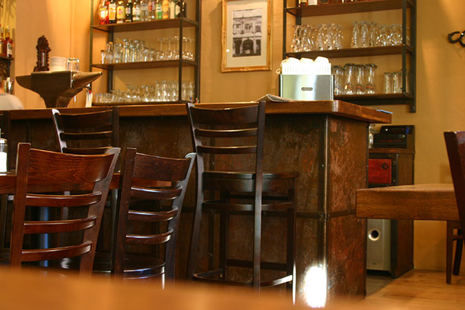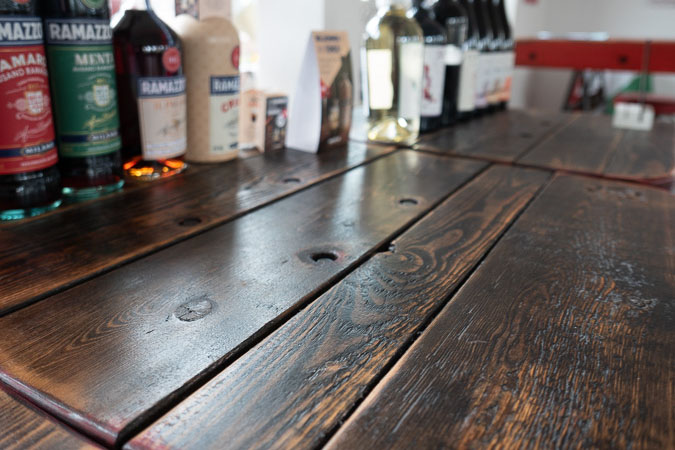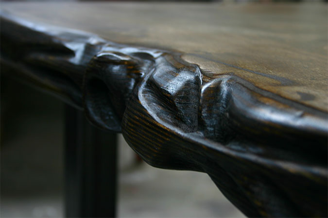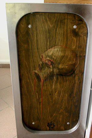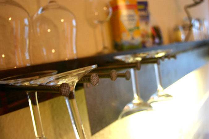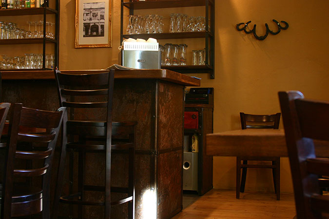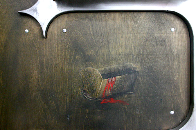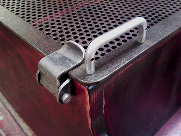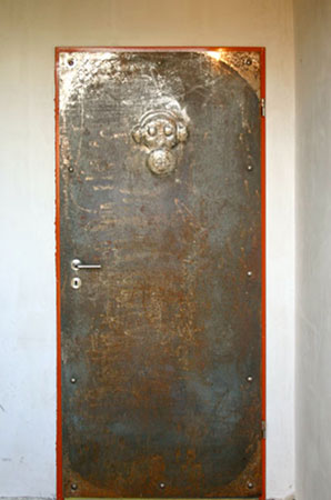 Anrichte: Kiefer, Chromblech, Waschbecken (emailliert)